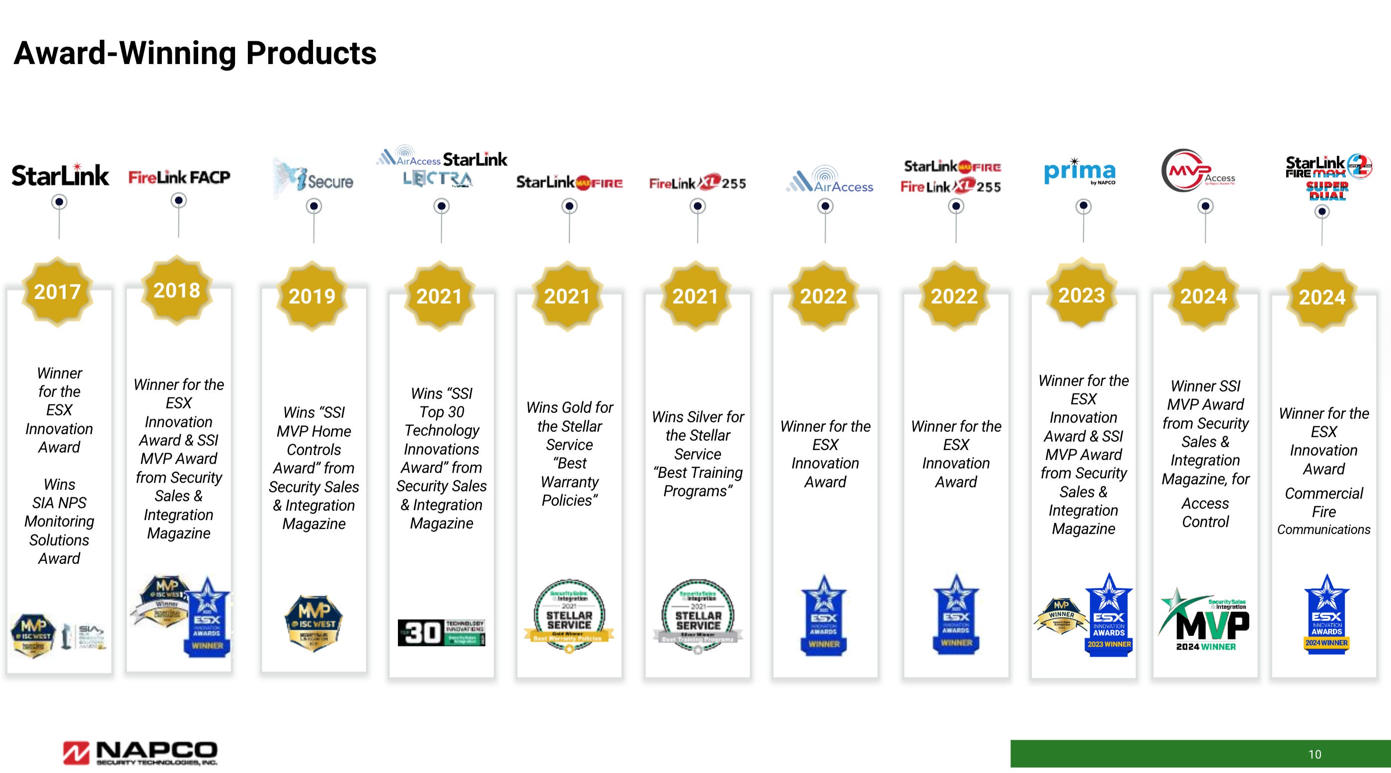 Napco Security Technologies ($NSSC) maakt sloten, alarmen en beveiligingssystemen. Hun producten beschermen scholen, kantoren en huizen. Ze verdienen geld wanneer mensen en bedrijven deze apparatuur kopen en installeren.Er zijn drie beveiligingssegmenten: