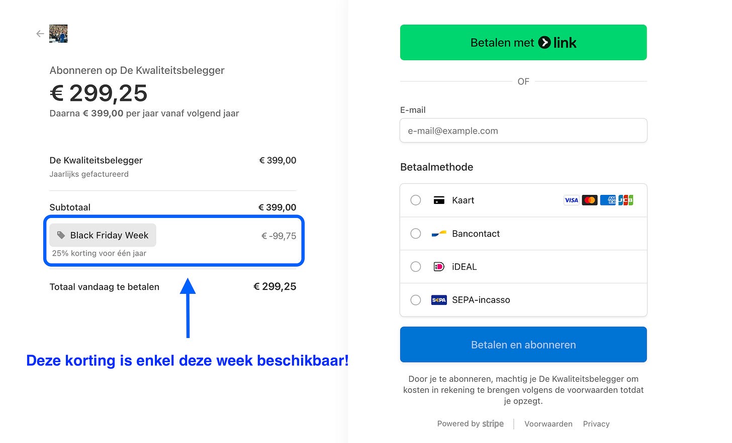 Je kan lid worden van De Kwaliteitsbelegger voor €399.