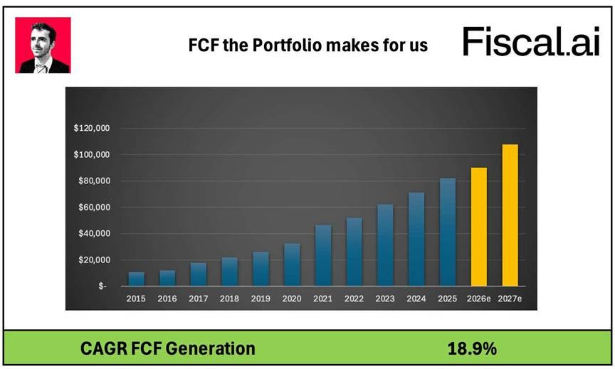 Onze portefeuille ligt op schema om elke minuut 1 euro aan Free Cash Flow te genereren.