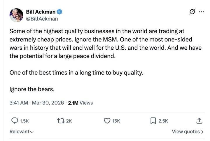 Zelfs mijn vriend en miljardair Bill Ackman zei het afgelopen week: