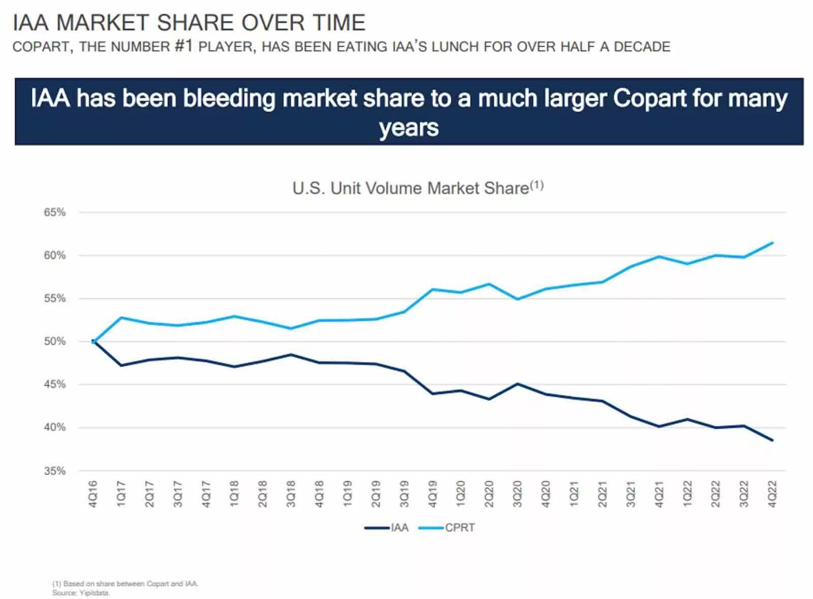 Het resultaat? Copart wint elk jaar een beetje meer marktaandeel. IAA verliest marktaandeel.