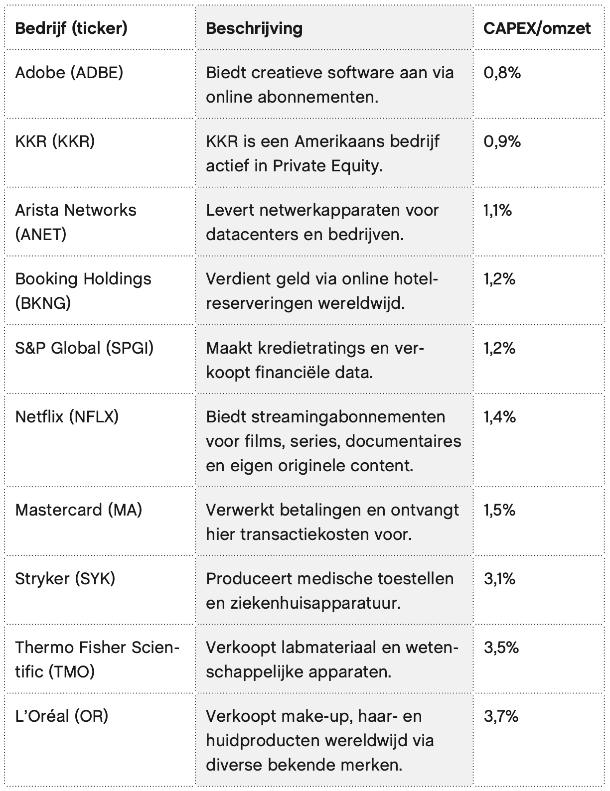 Hier zijn tien kwaliteitsbedrijven met een heel lage kapitaalintensiteit: