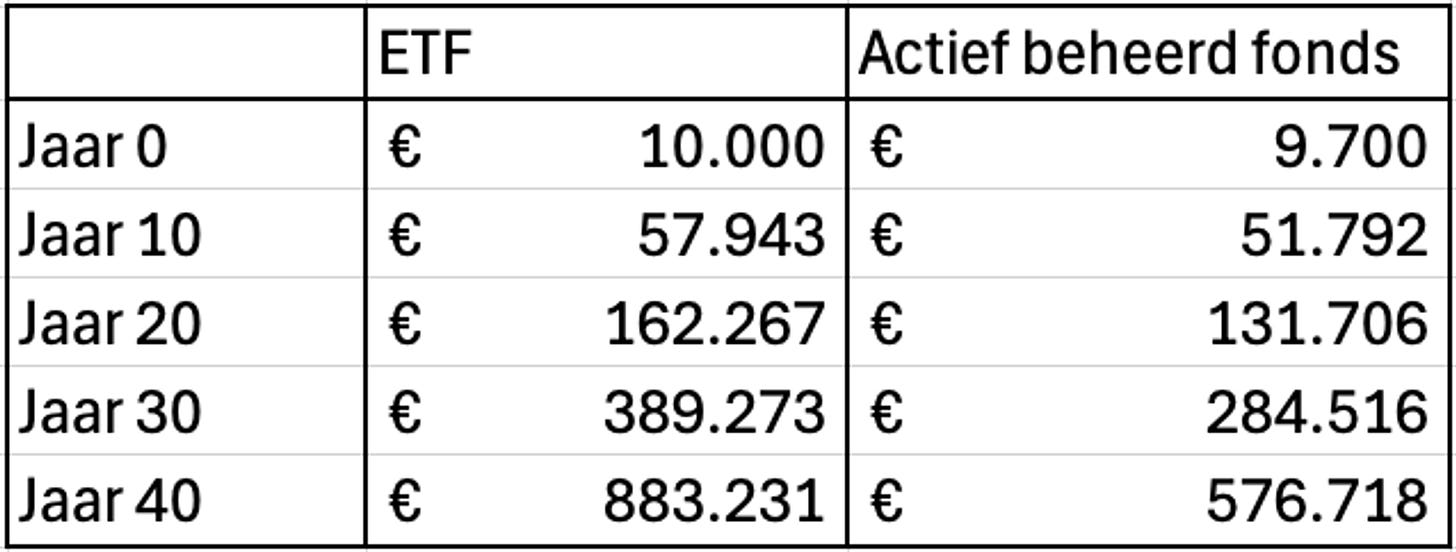 Dit betekent dat je bijna twee keer zoveel zou hebben met een ETF in vergelijking met een actief beheerd fonds!