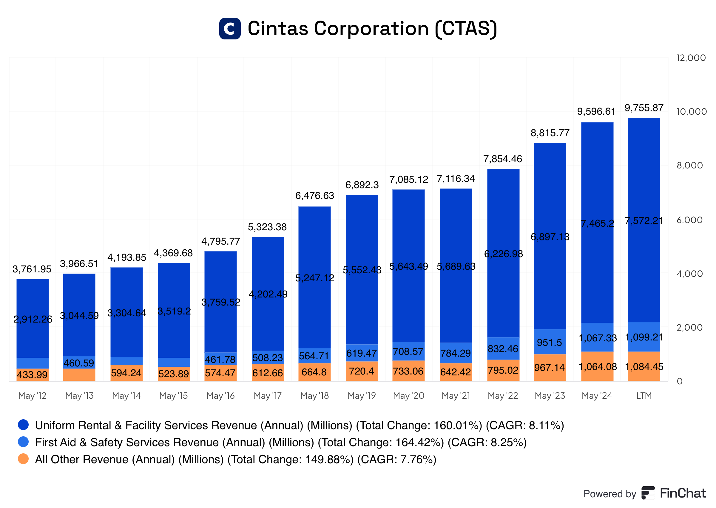 Cintas levert uniformen en schoonmaakdiensten aan bedrijven. Ze helpen bedrijven er professioneel uit te zien door werkkleding, matten en schoonmaakproducten te leveren.
