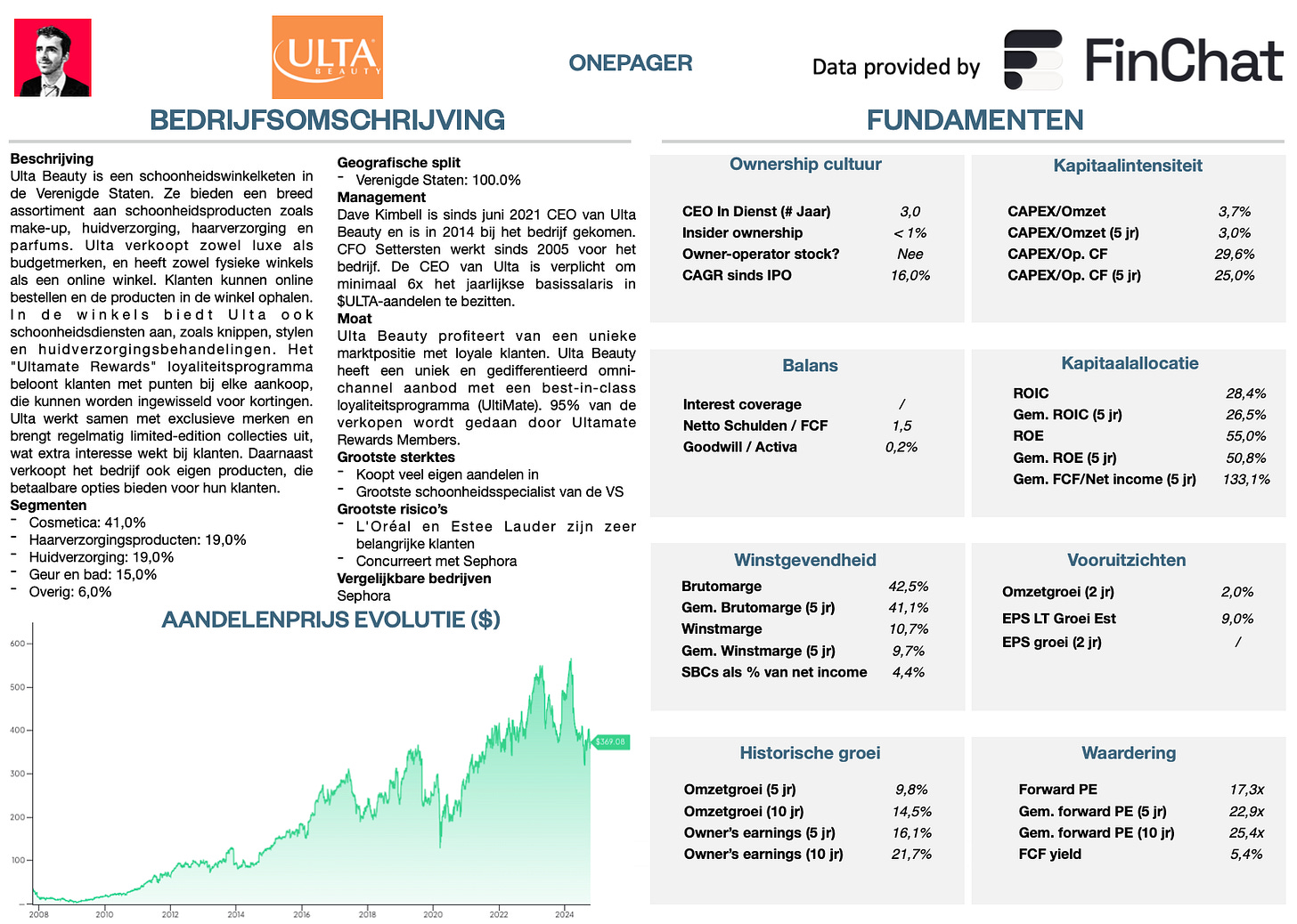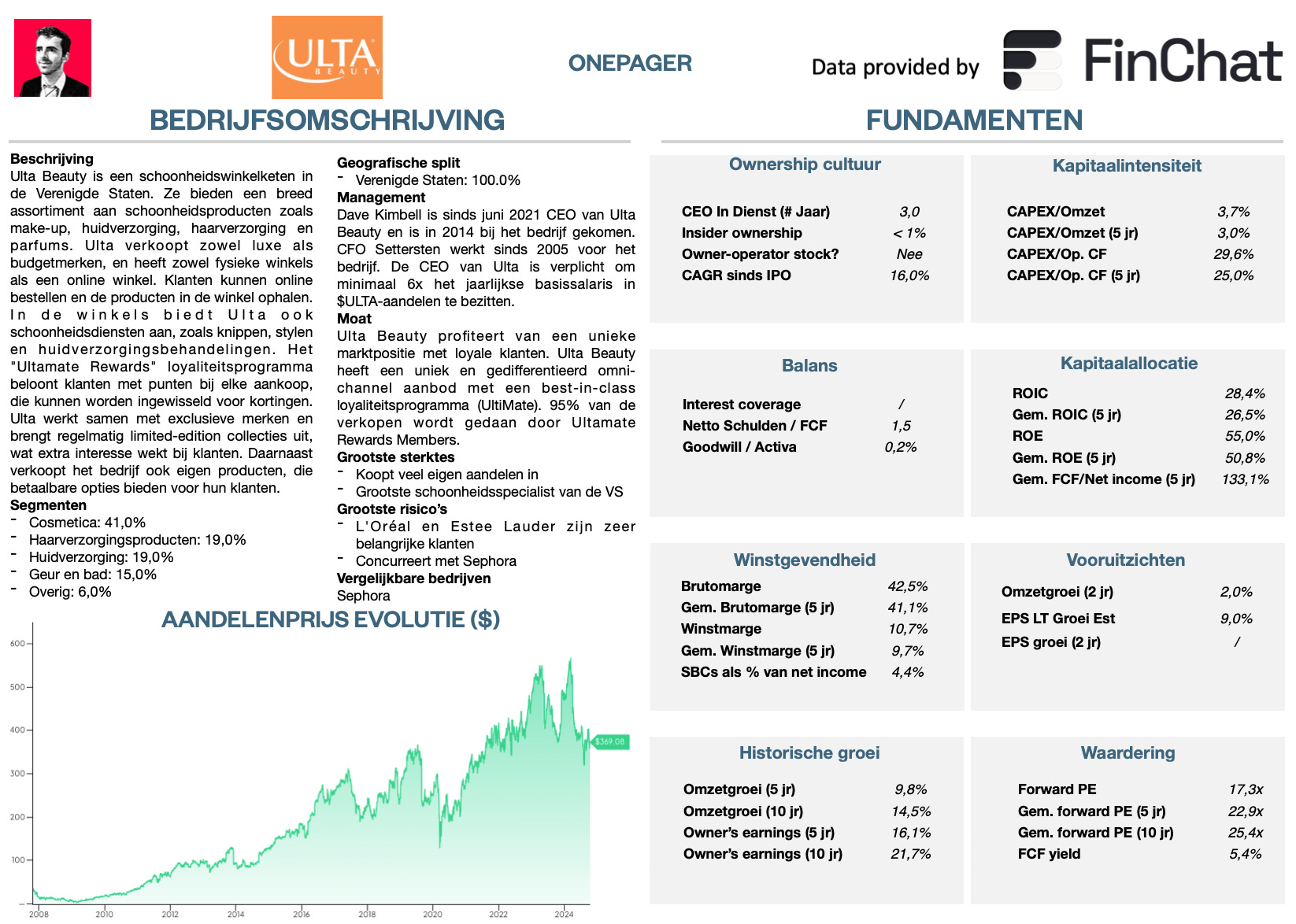 Het is fijn om te zien dat de beurskoers positief reageert aangezien we Ulta Beauty in onze portefeuille bezitten.