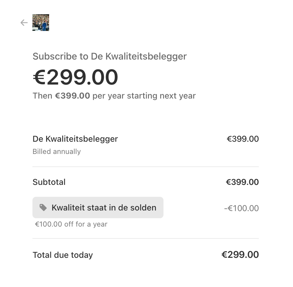 Dat betekent dat je slechts €299/jaar betaalt. Een korting van €800 (!).