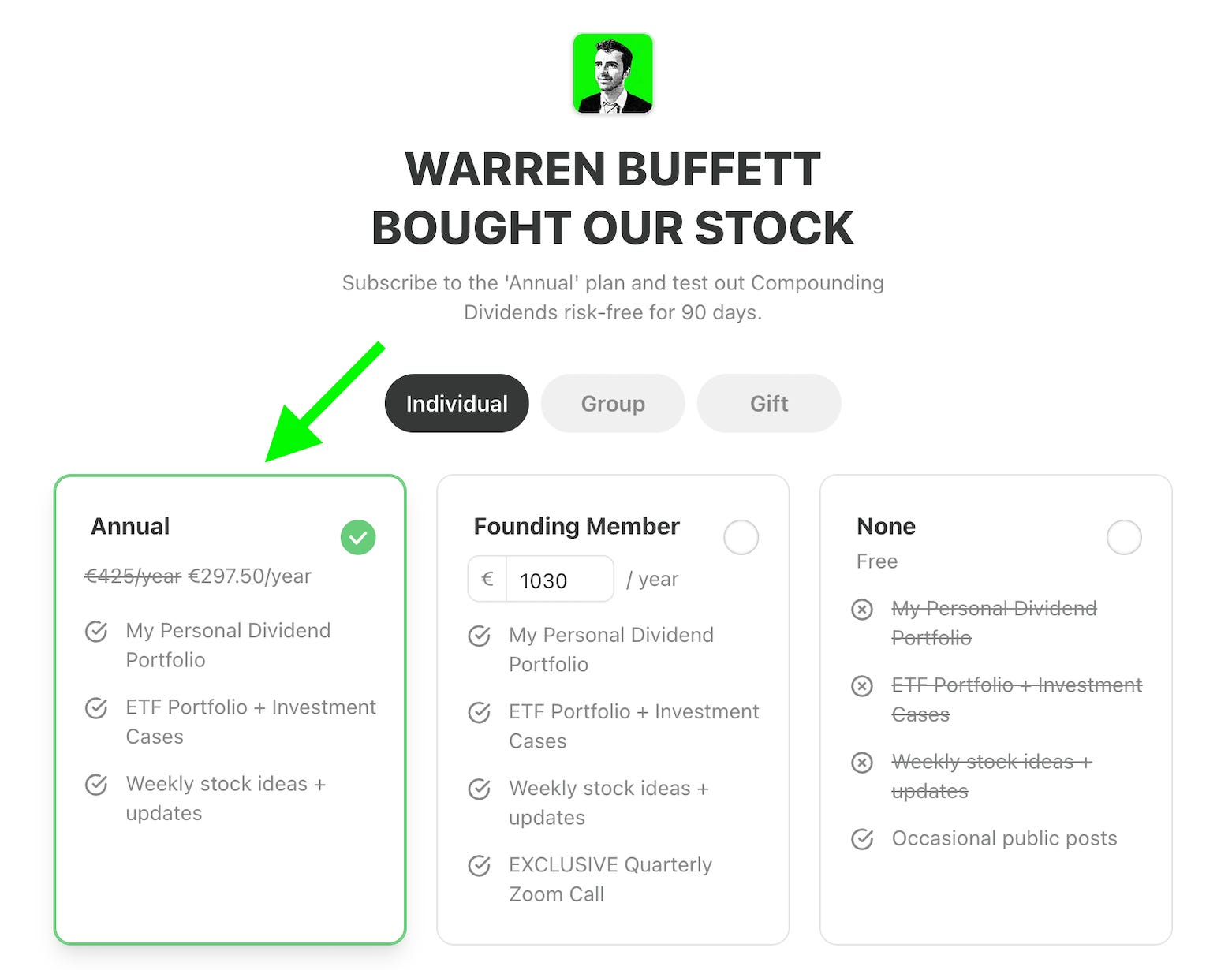 Een abonnement op de Founding Tier van Compounding Dividends kost normaal €1.090 per jaar