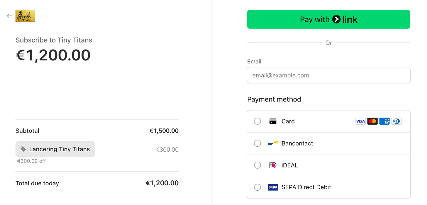 Je wordt lid van Tiny Titans voor €1.200 per jaar