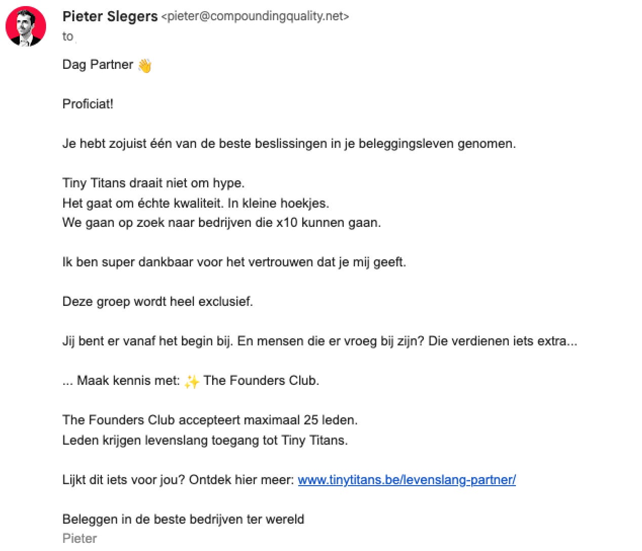 Mensen die morgen lid worden van Tiny Titans, krijgen de kans om lid te worden van ✨ The Founders Club.