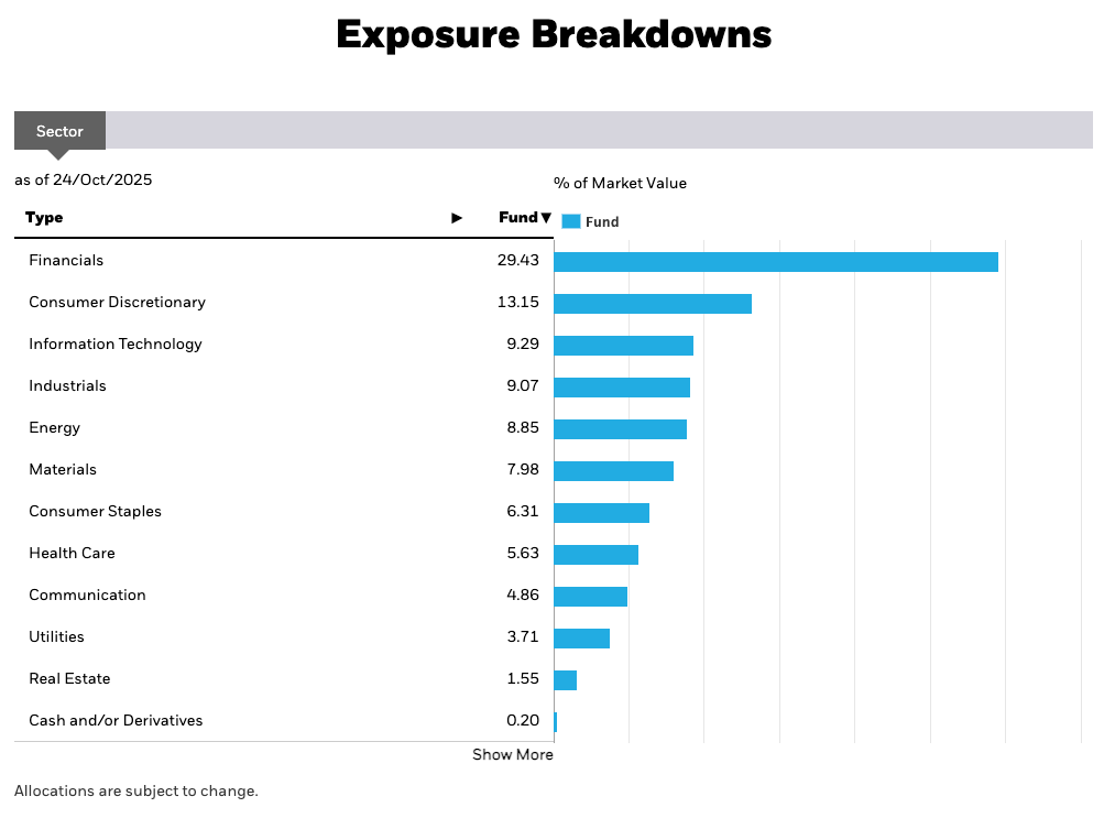 Hier zie je in welke sectoren deze ETF is belegd: