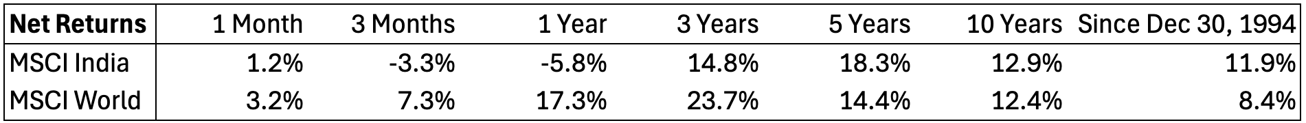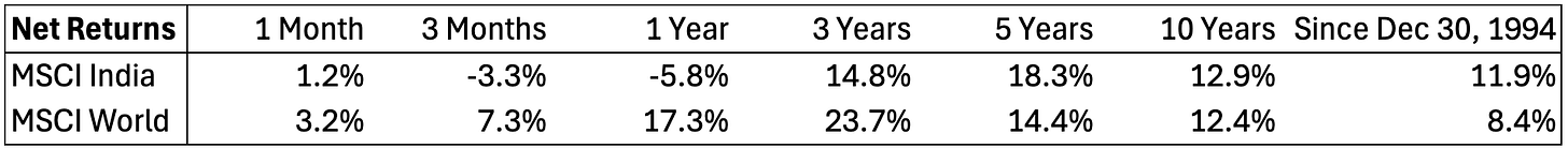De MSCI India Index presteerde sinds 1994 3,5% per jaar beter dan de MSCI World.