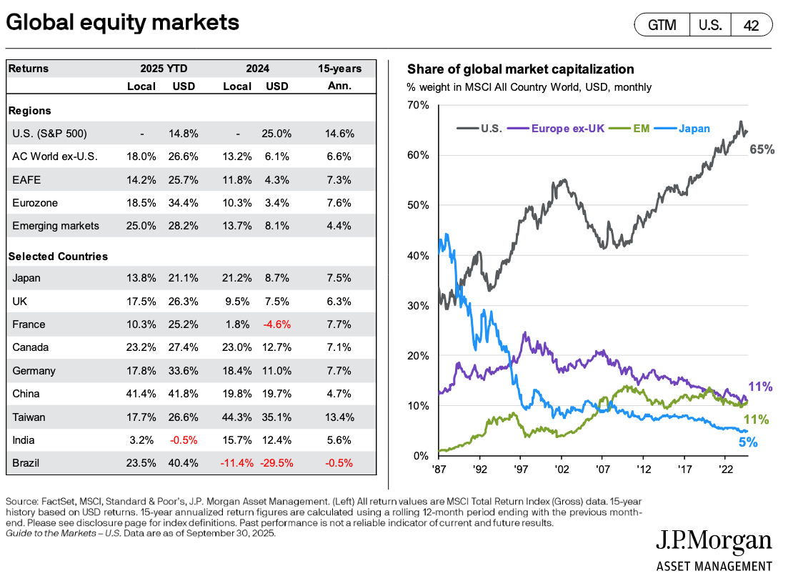 Amerikaanse bedrijven worden steeds belangrijker als percentage van de wereldwijde marktkapitalisatie.