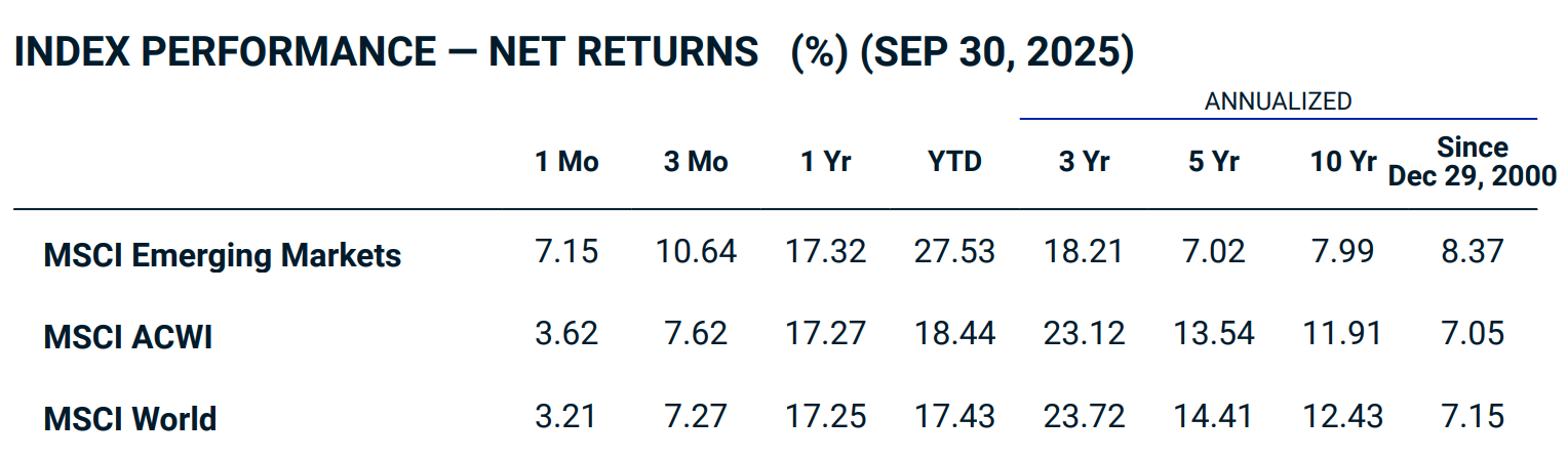 Zoals je hier kan zien doen bedrijven uit de opkomende markten het op lange termijn beter dan de MSCI World: