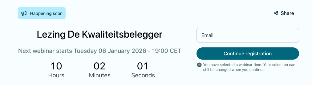 Vanavond om 19u00 geef ik net zoals vorige week een Masterclass Kwaliteitsbeleggen.
