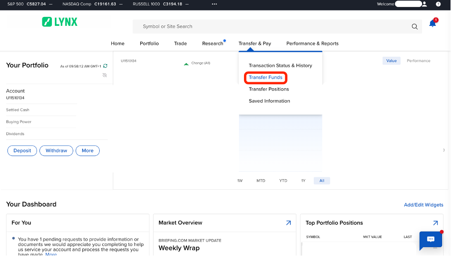 Vervolgens klik je op ‘Transfer Funds’, bij ‘Transfer & Pay’.