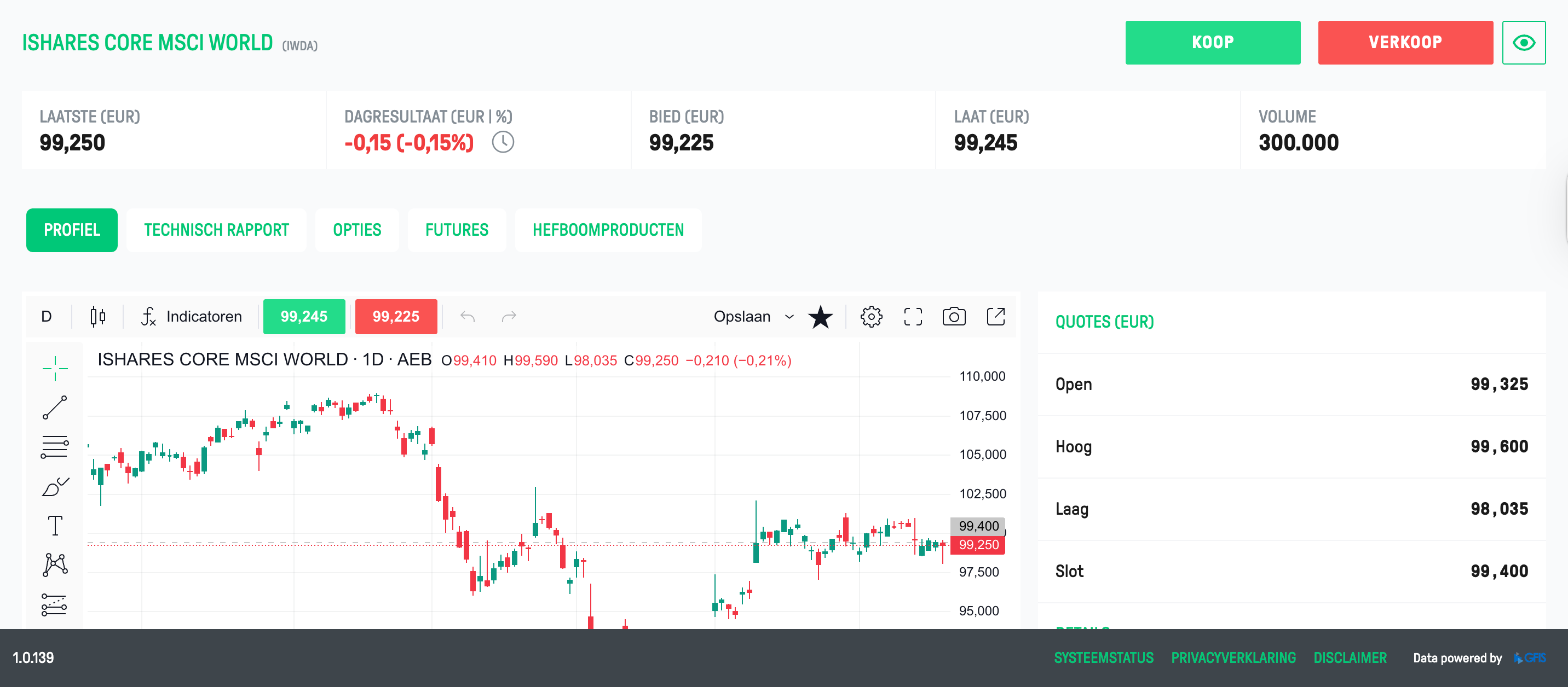 Je klikt op deze ETF en zie het rechts bovenaan ‘KOOP’ staan: