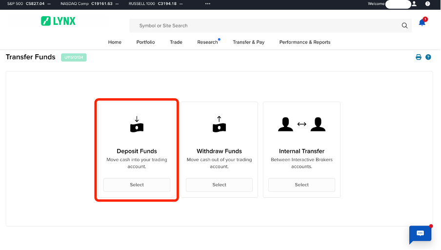 Daarna ga je naar ‘Deposit Funds’.