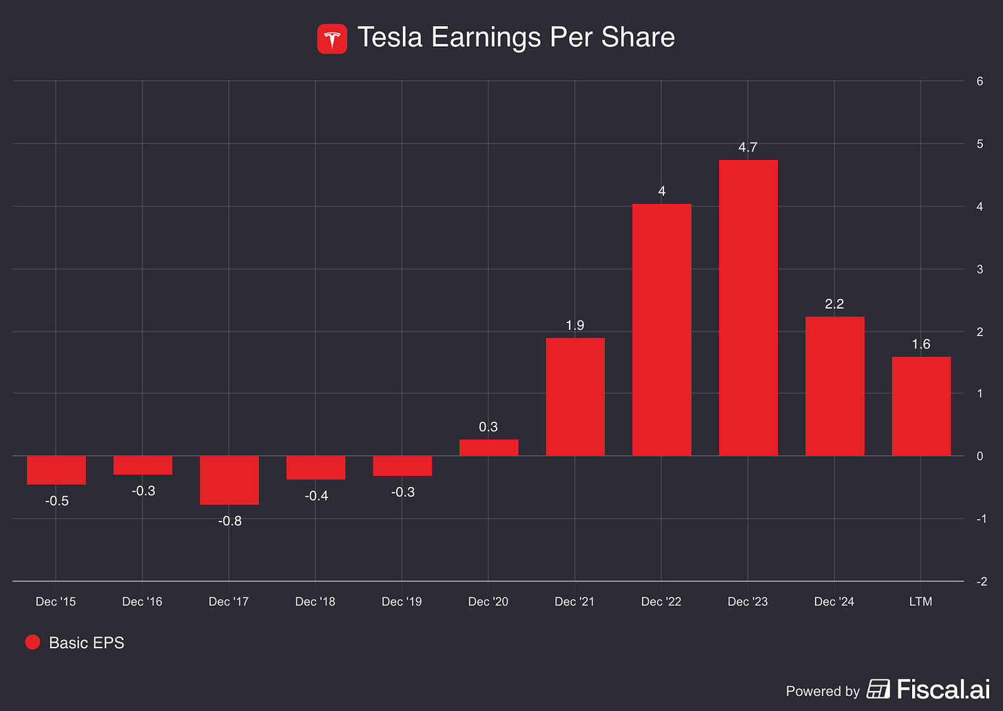 Hier zie je de winstgevendheid van Tesla: