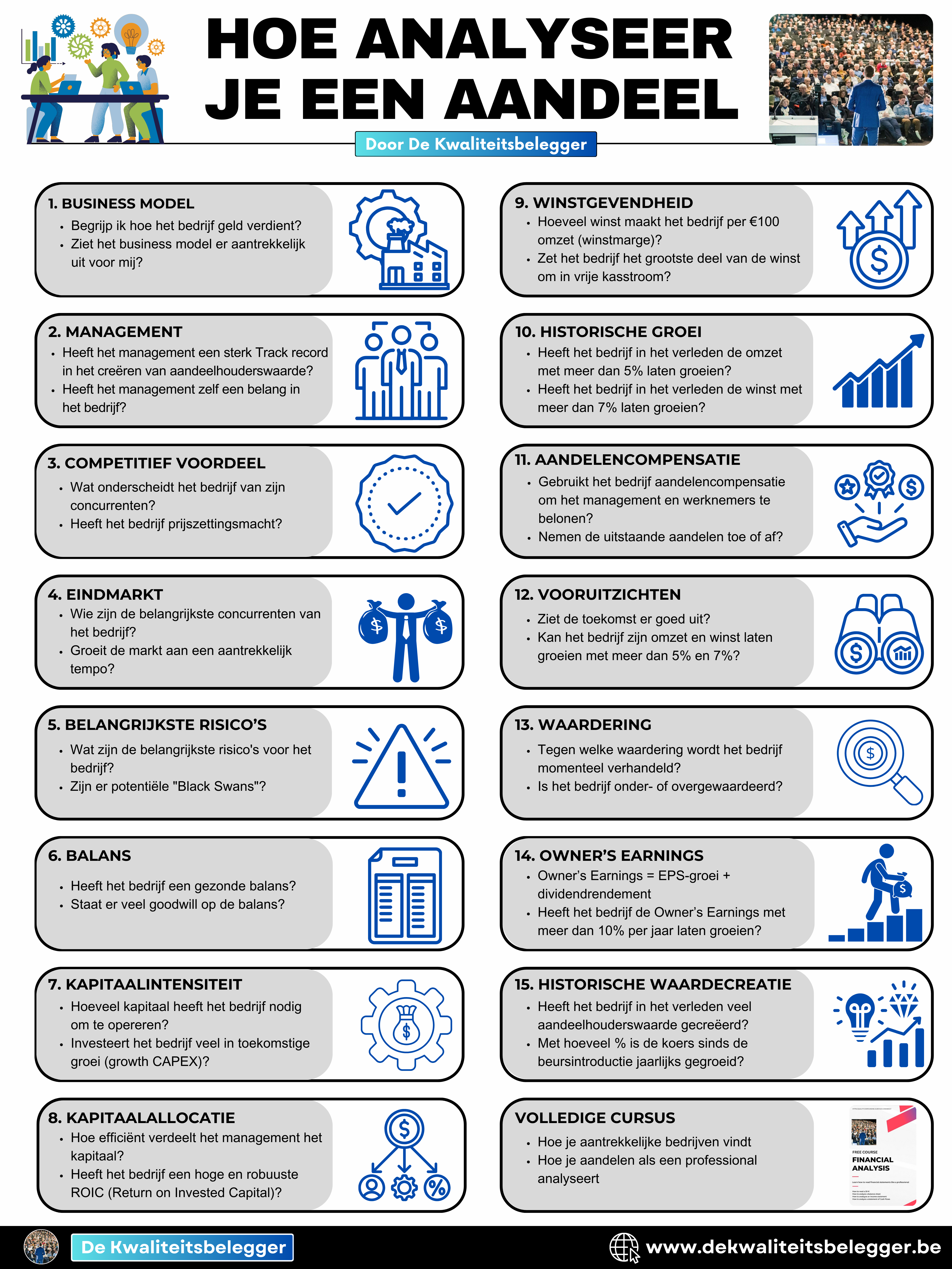 We gebruiken onze 15-stappen methode om het bedrijf te analyseren.