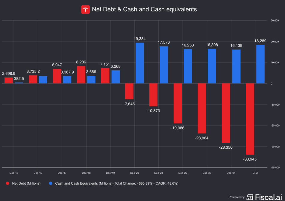 Tesla heeft in het algemeen een zeer gezonde balans.