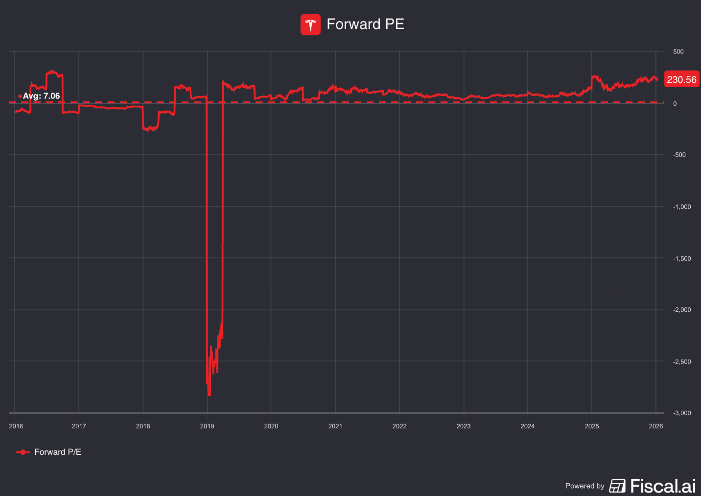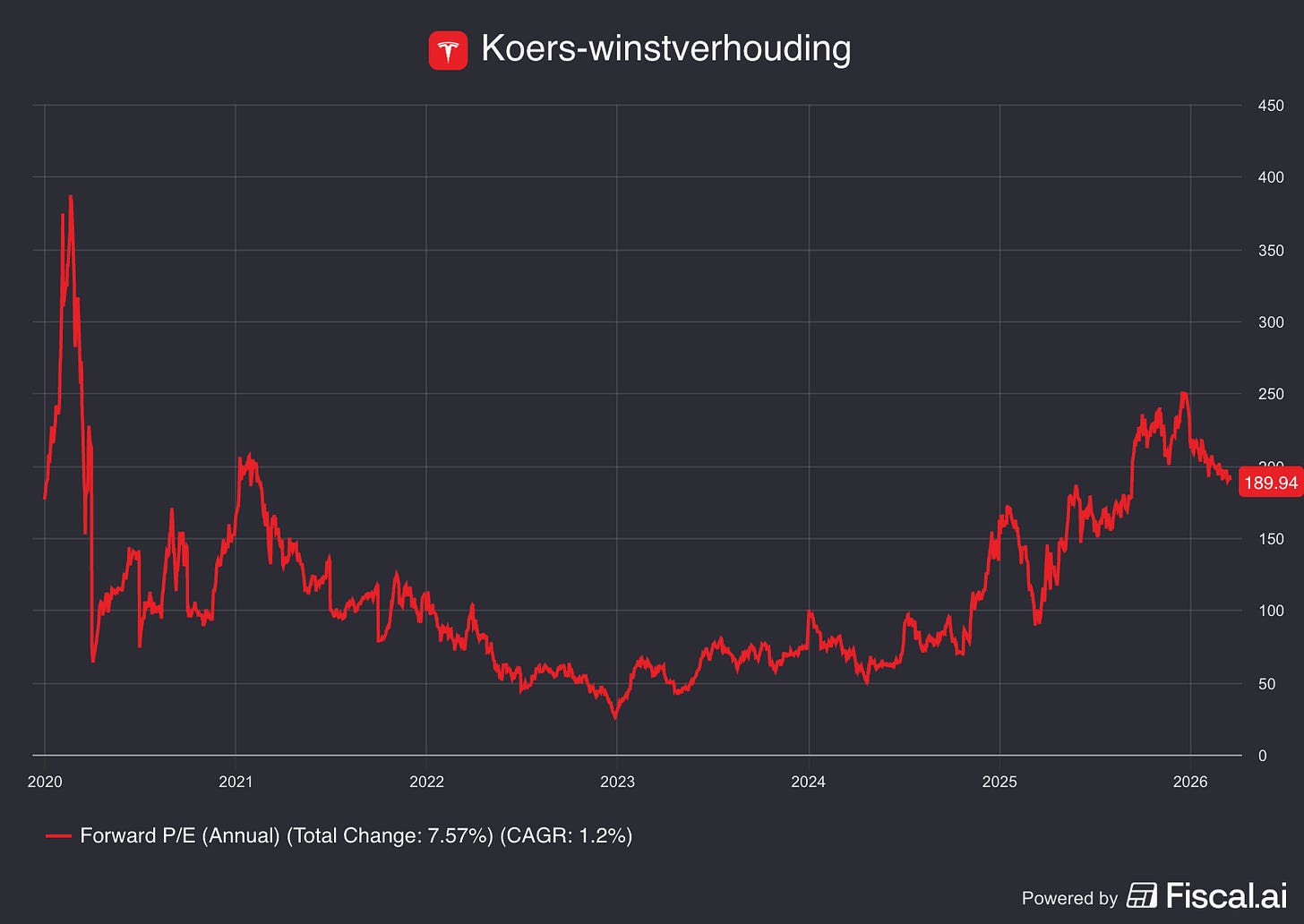 Forward PE: 189,9x (lager dan 5-jaarsgemiddelde? < 102,8x? ❌)