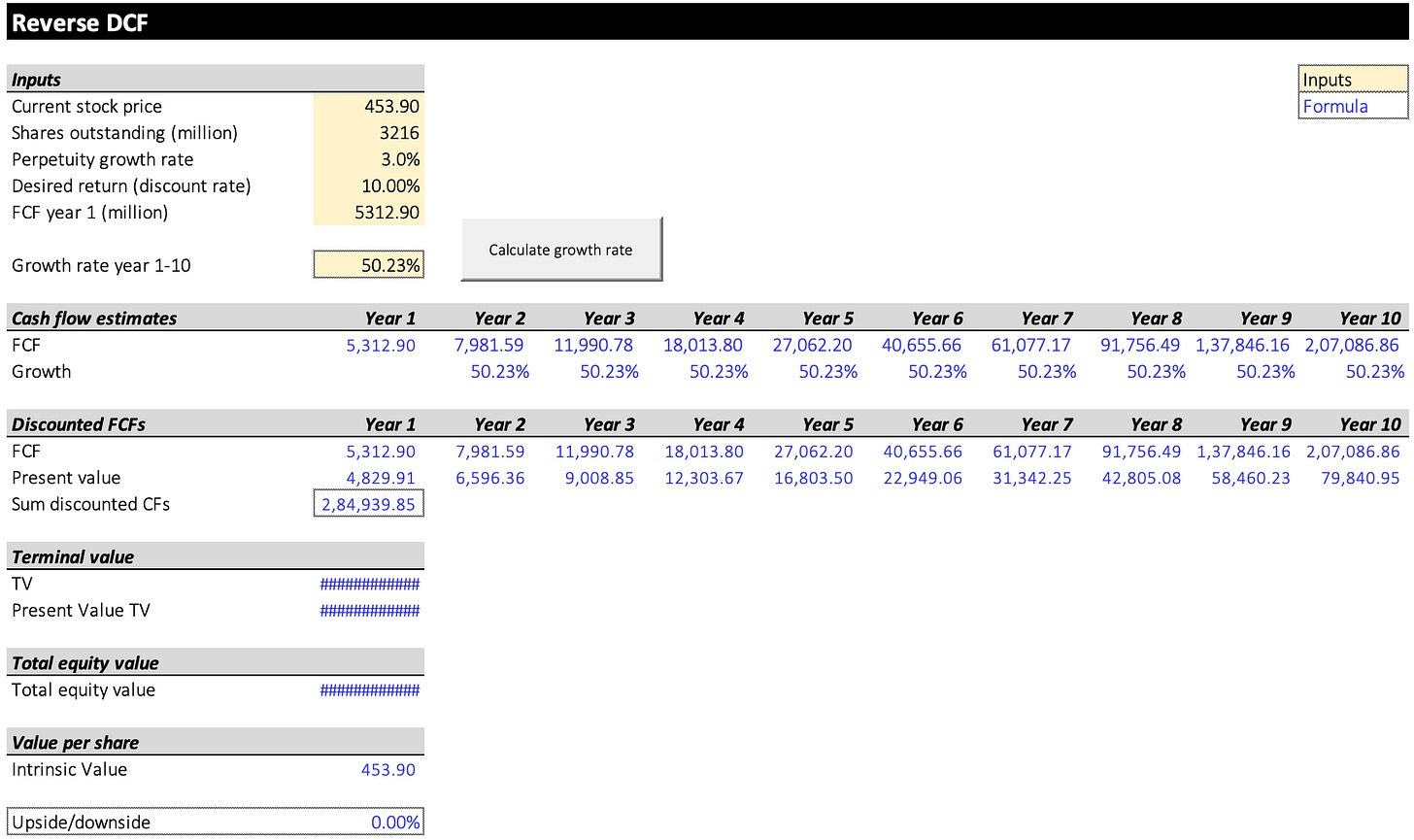 Een omgekeerde DCF laat je de verwachtingen zien die in de huidige aandelenkoers zijn ingeprijsd.