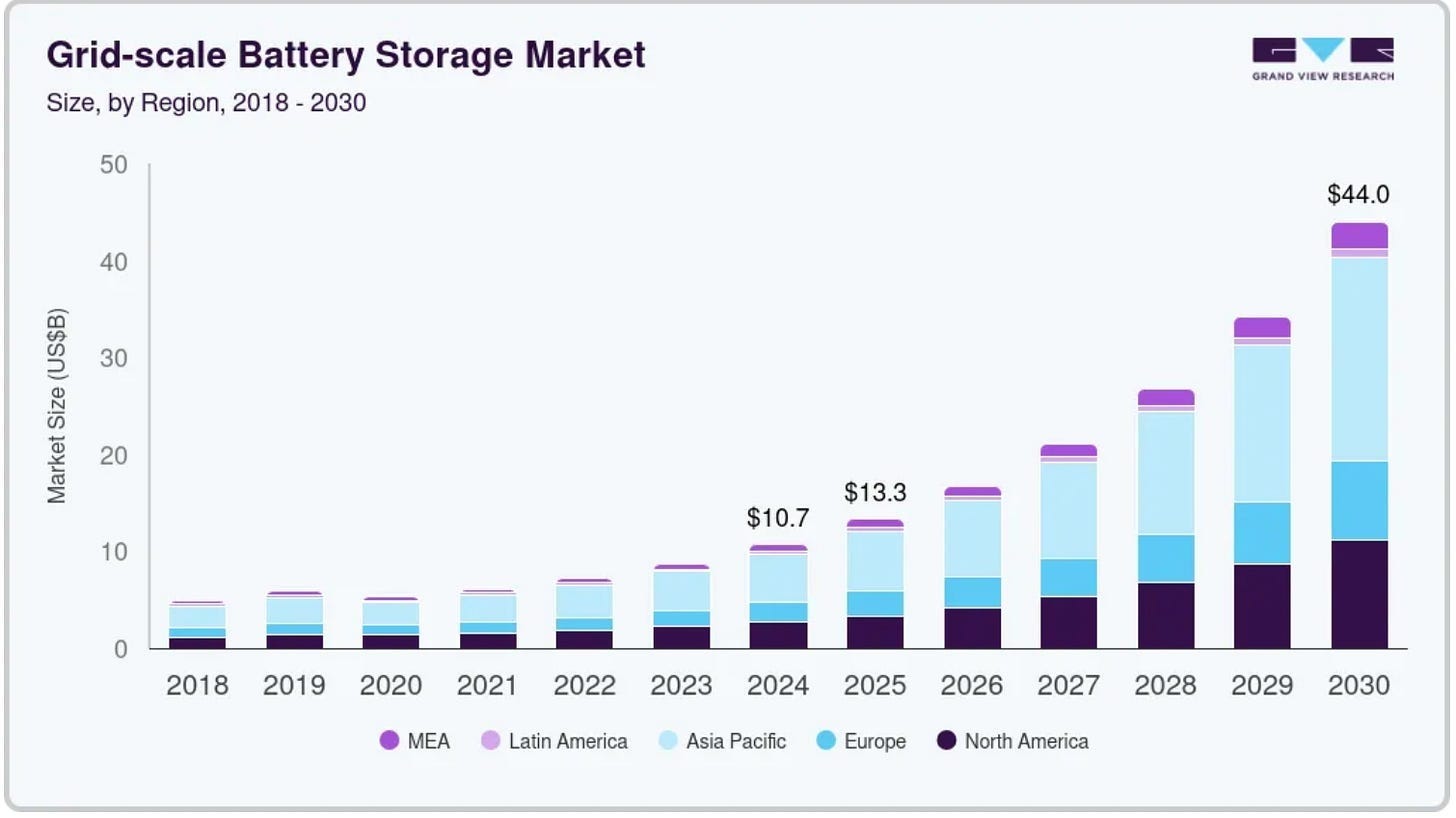 De markt voor grootschalige batterijsystemen groeit naar verwachting met 27% per jaar tot 2030.