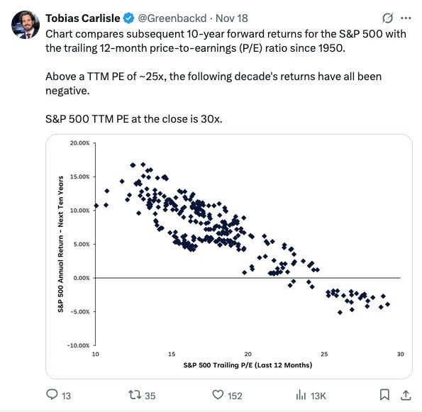 Vandaag is de S&P 500 zo hoog gewaardeerd dat we zelfs een negatief rendement mogen verwachten de komende jaren.