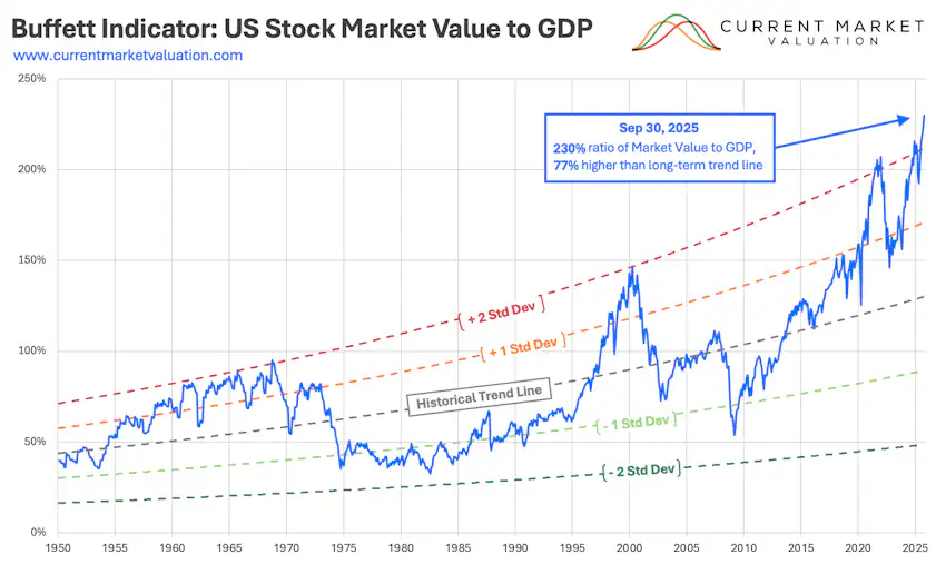 Het is een indicator die de waarde van alle Amerikaanse aandelen vergelijkt met de waarde van de Amerikaanse economie.