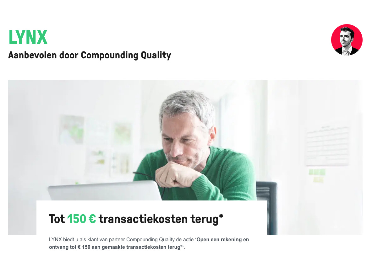 Als Partner bij De Kwaliteitsbelegger krijg je €150 gratis transactietegoed bij Lynx.