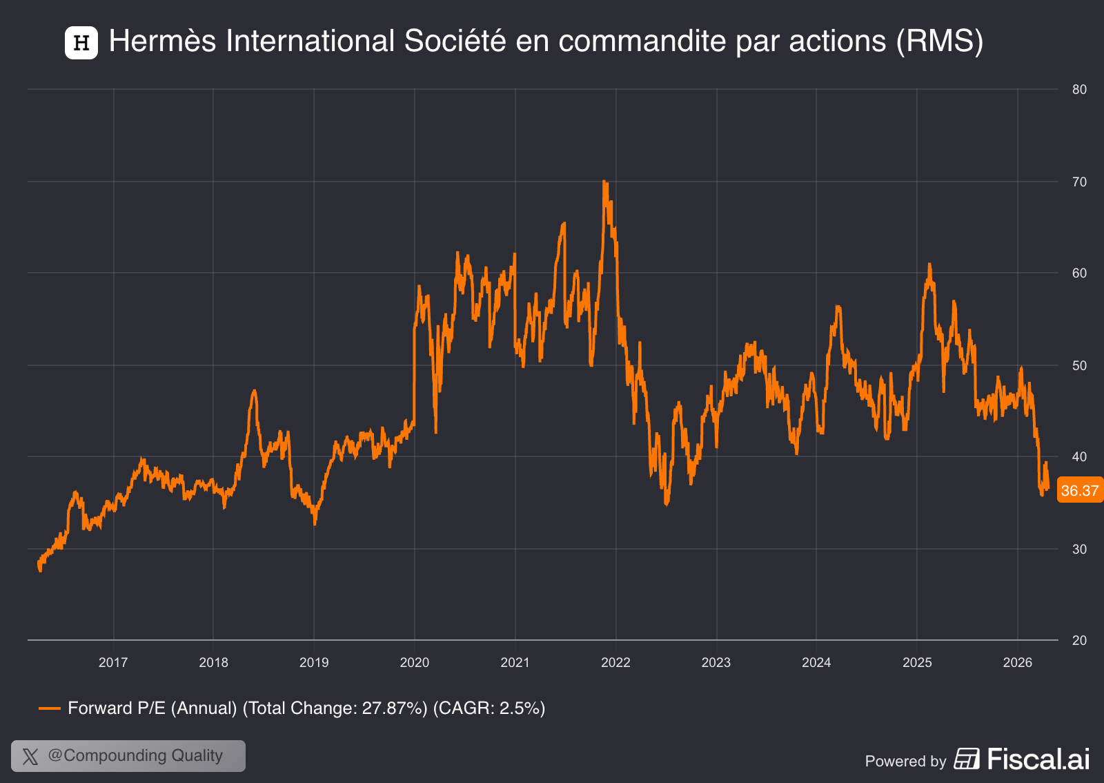 Ik zou Hermès graag bezitten aan een FWD PE van 30,0x.