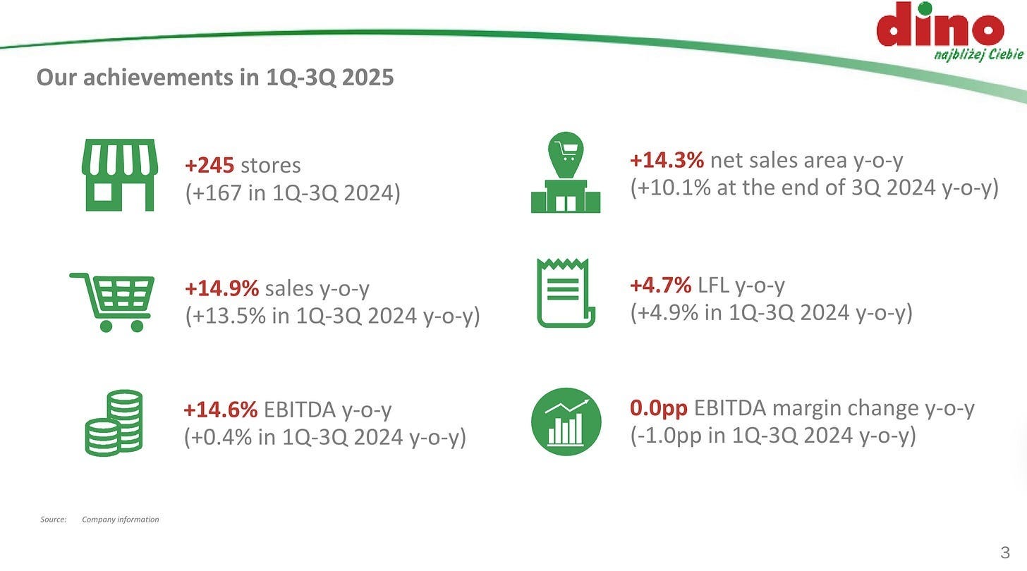 Dino Polska is een Poolse supermarktketen met vooral kleine winkels in dorpen en woonwijken. Het bedrijf verkoopt dagelijkse boodschappen en huishoudelijke producten.2025 was een interessant jaar voor Dino Polska.