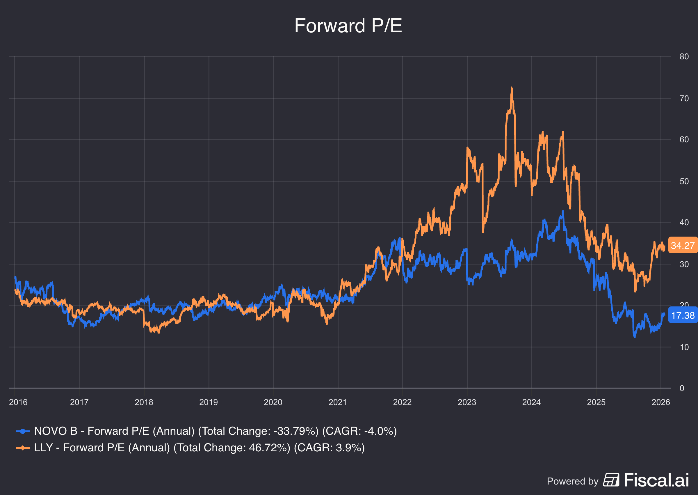 Hierdoor is Novo Nordisk de helft zo goedkoop als Eli Lilly.