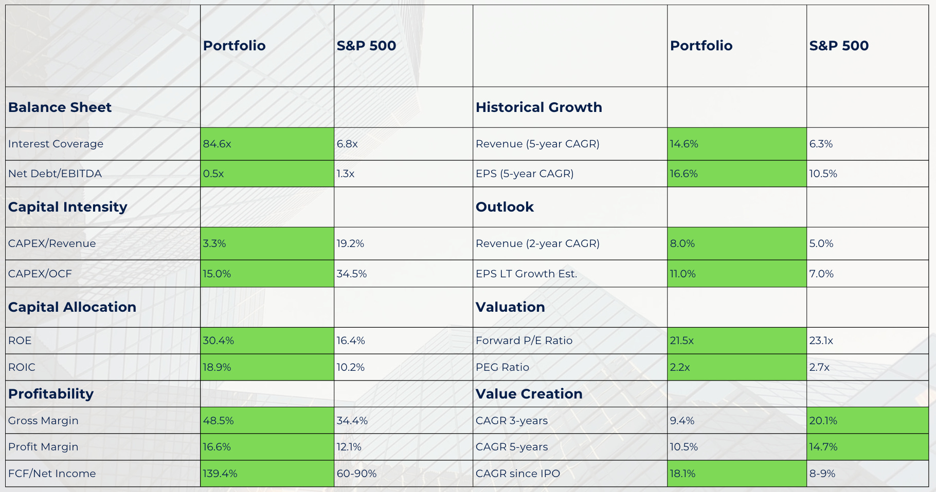 De bedrijven in onze Portefeuille zijn duidelijk beter dan de S&P 500.