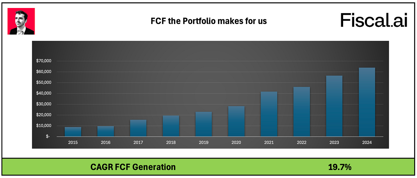 Wat elk bedrijf per jaar voor ons verdient = aantal aandelen dat we bezitten * Free Cash Flow per Aandeel