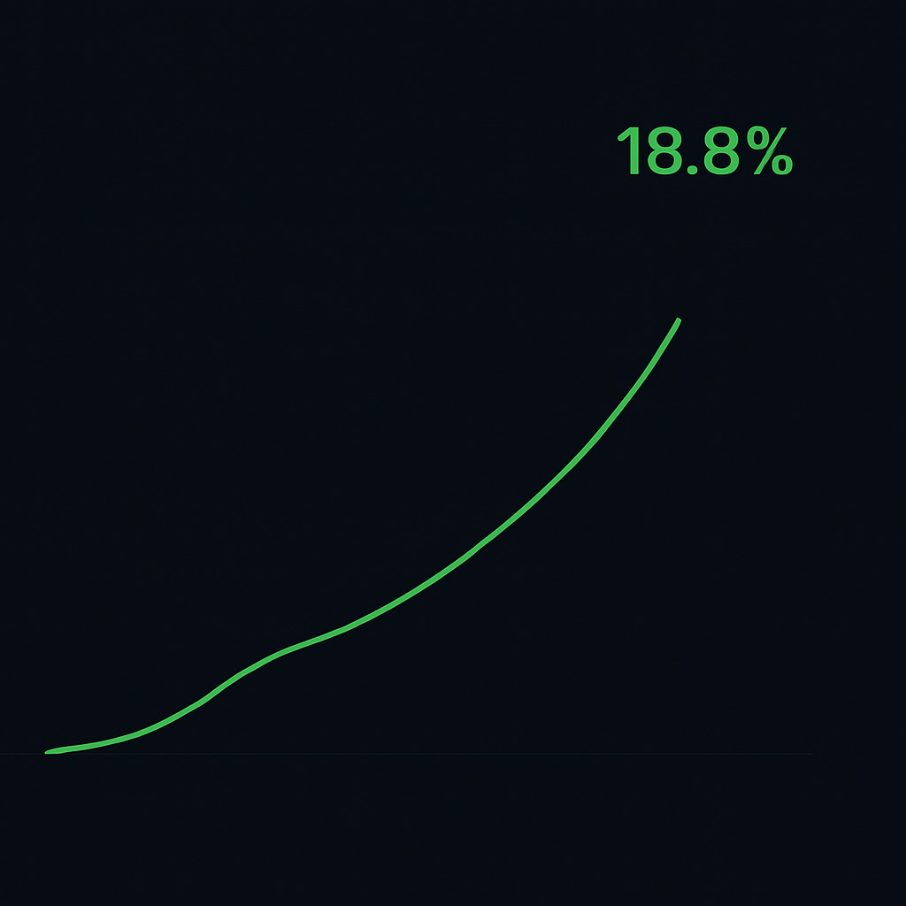 Tot nu toe werkt deze strategie. De Portefeuille heeft een jaarlijks rendement van 18,8% behaald.