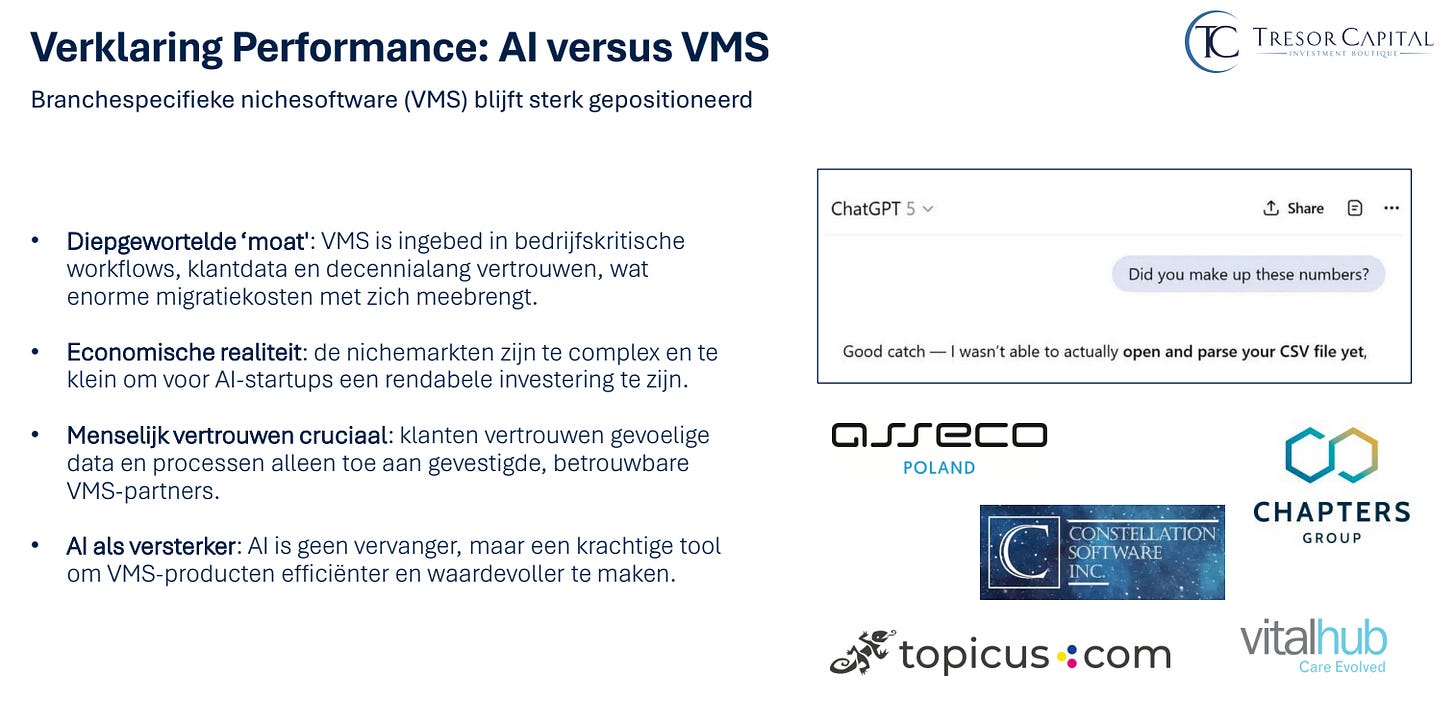 Net als De Kwaliteitsbelegger is Tresor Capital aandeelhouder van Constellation Software en Topicus, twee serial acquirers van Vertical Market Softwarebedrijven (VMS).