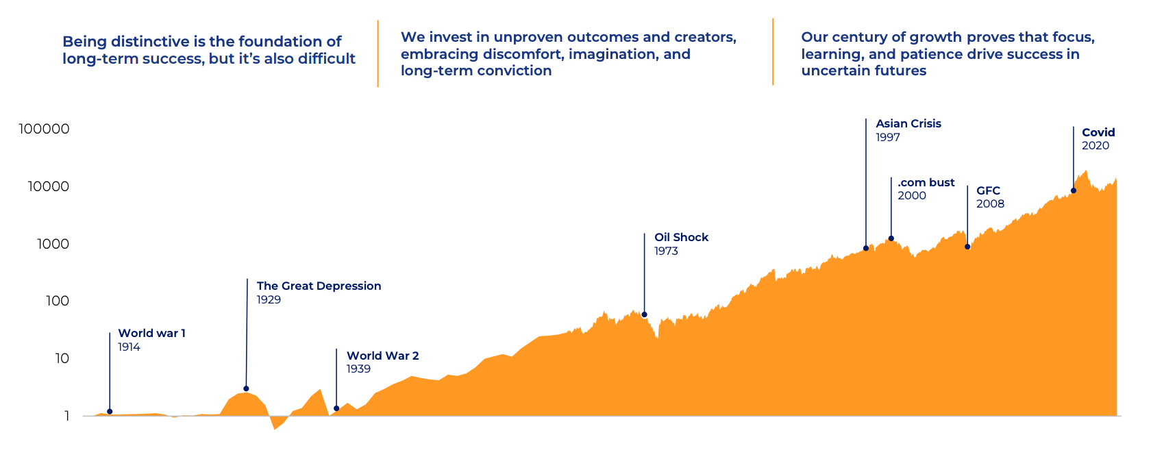 Scottish Mortgage is al beursgenoteerd sinds 1909. Het fonds doorstond talloze crisissen, maar bleef trouw aan z’n koers met focus op de lange termijn.