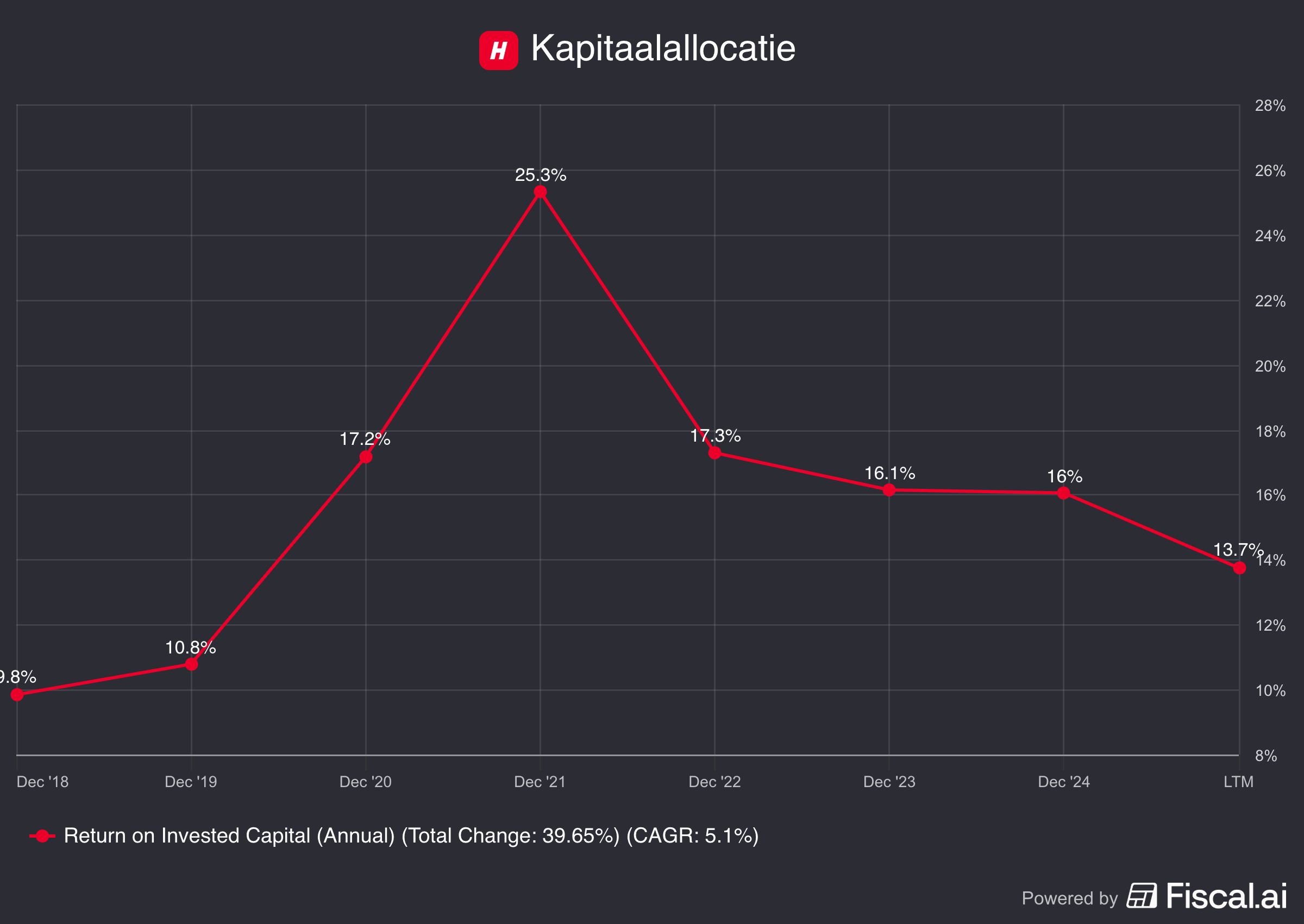 Meteen valt één cijfer op: het hoge rendement op geïnvesteerd kapitaal.