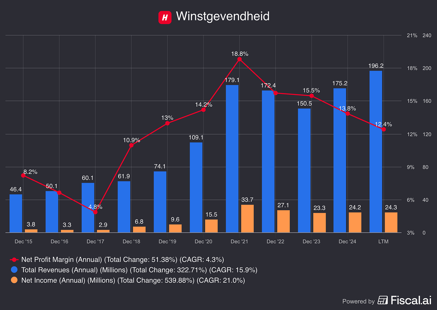 Het bedrijf heeft een sterke staat van dienst op het gebied van nettowinstgroei.