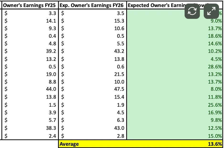 De groei van de Owner’s Earnings binnen onze portefeuille.
