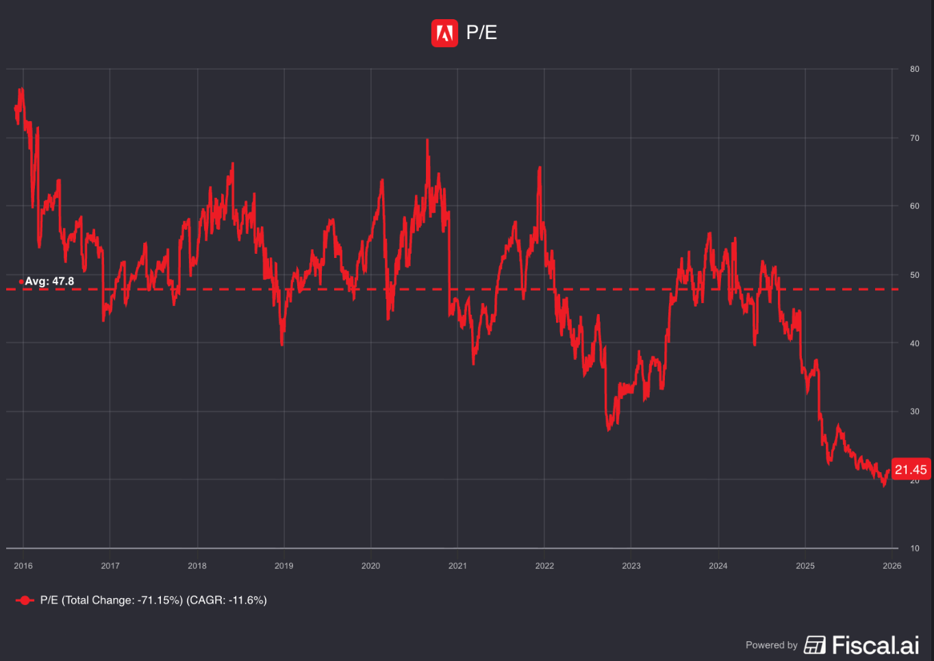 Daarnaast heeft Adobe een hoge free cash flow marge (41,4%) en een sterk rendement op geïnvesteerd kapitaal (ROIC) (35,8%).