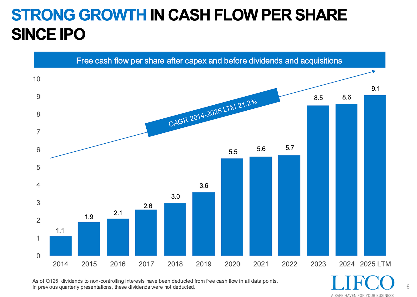 Lifco verdient zijn geld door kleine tot middelgrote privébedrijven over te nemen die heel stabiele cash flows hebben.