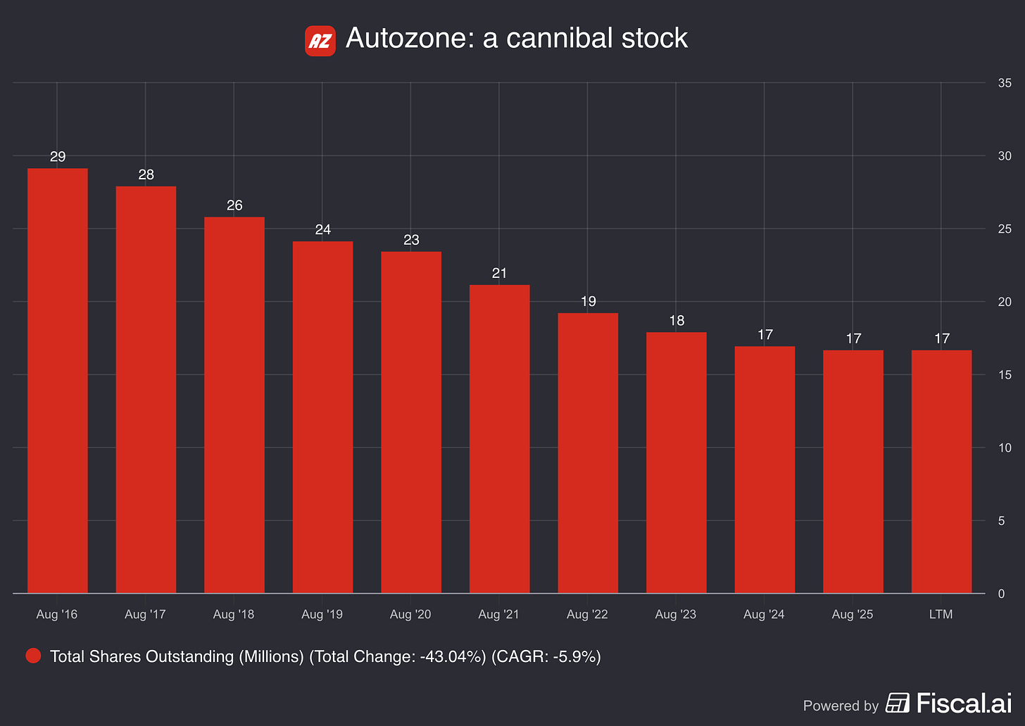 Voor Autozone is een dalende beurskoers iets positiefs.