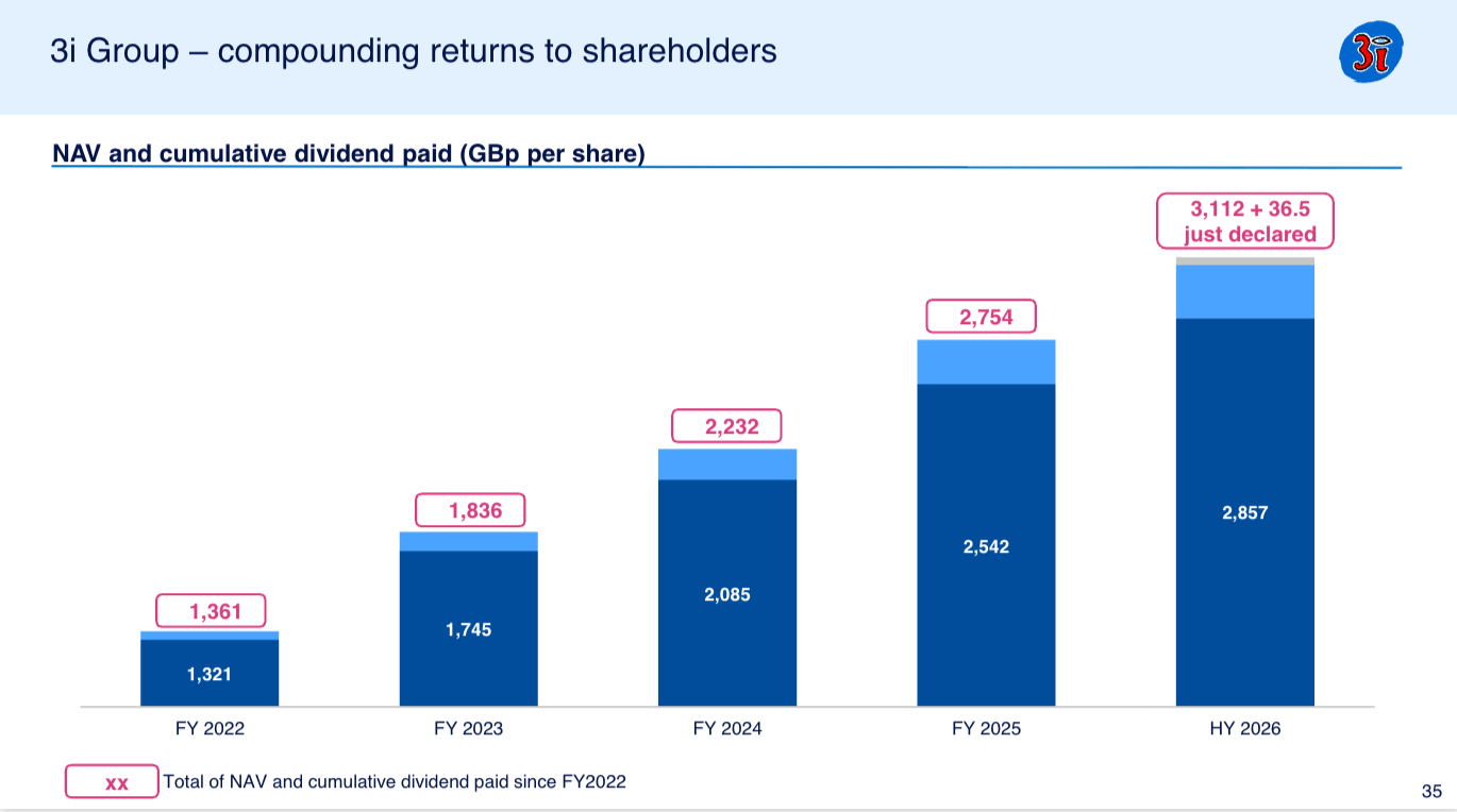 Laten we dus even uitzoomen en kijken naar de intrinsieke waardegroei van 3i Group.