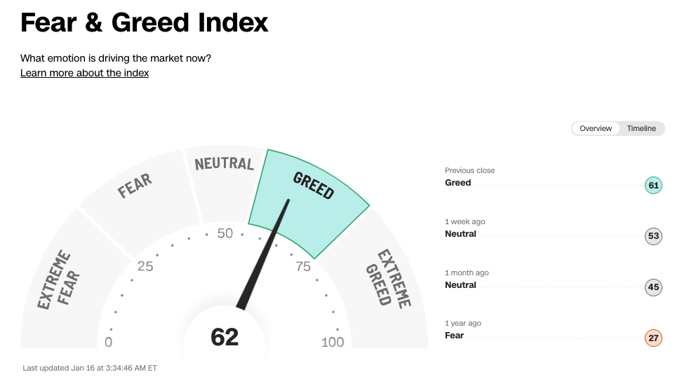 Volgens de Fear & Greed Index zijn beleggers vandaag ‘Greedy’: