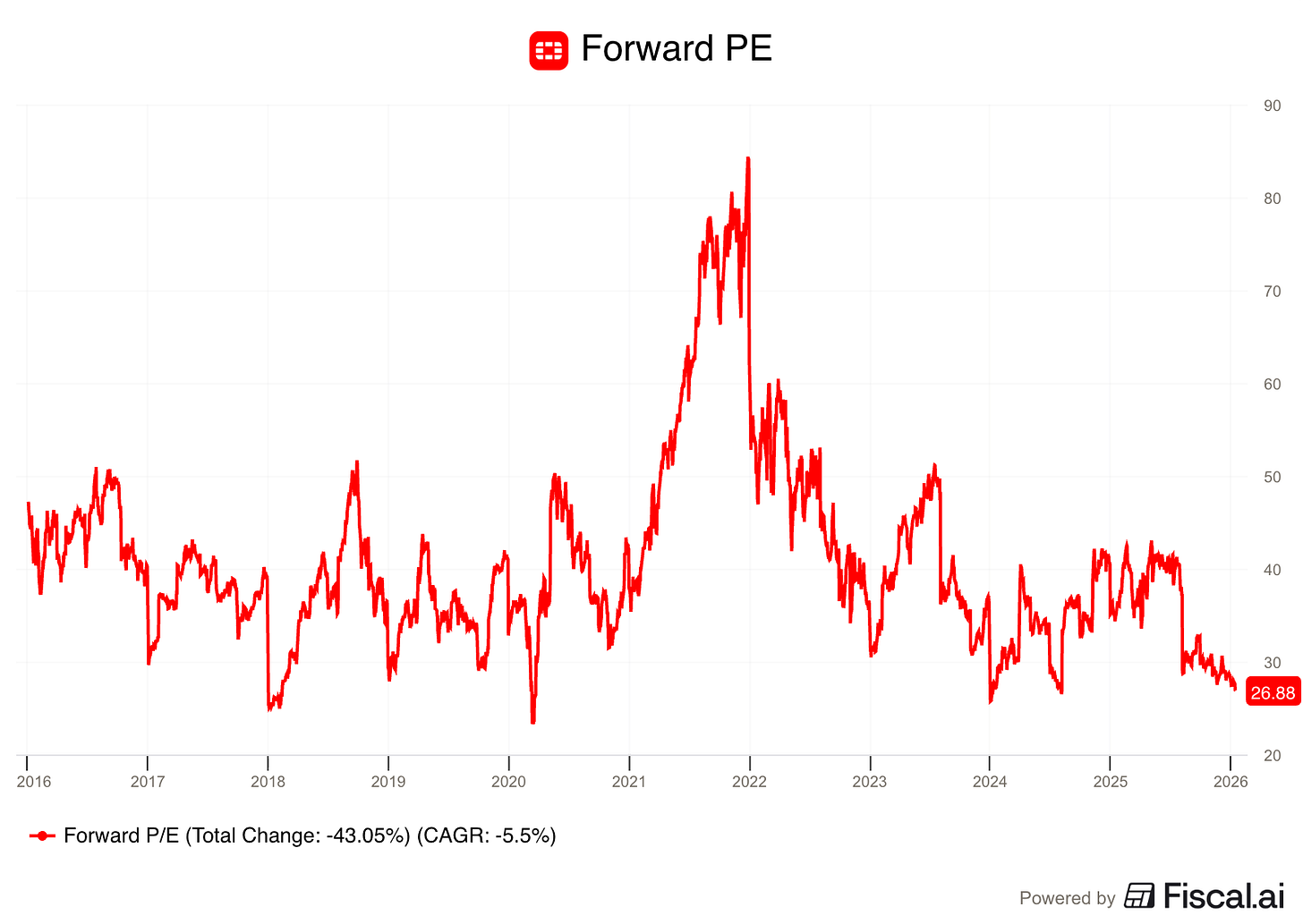 Kijk maar eens naar de koersgrafiek: sinds oktober 2025 is de koers met bijna 20% gezakt: