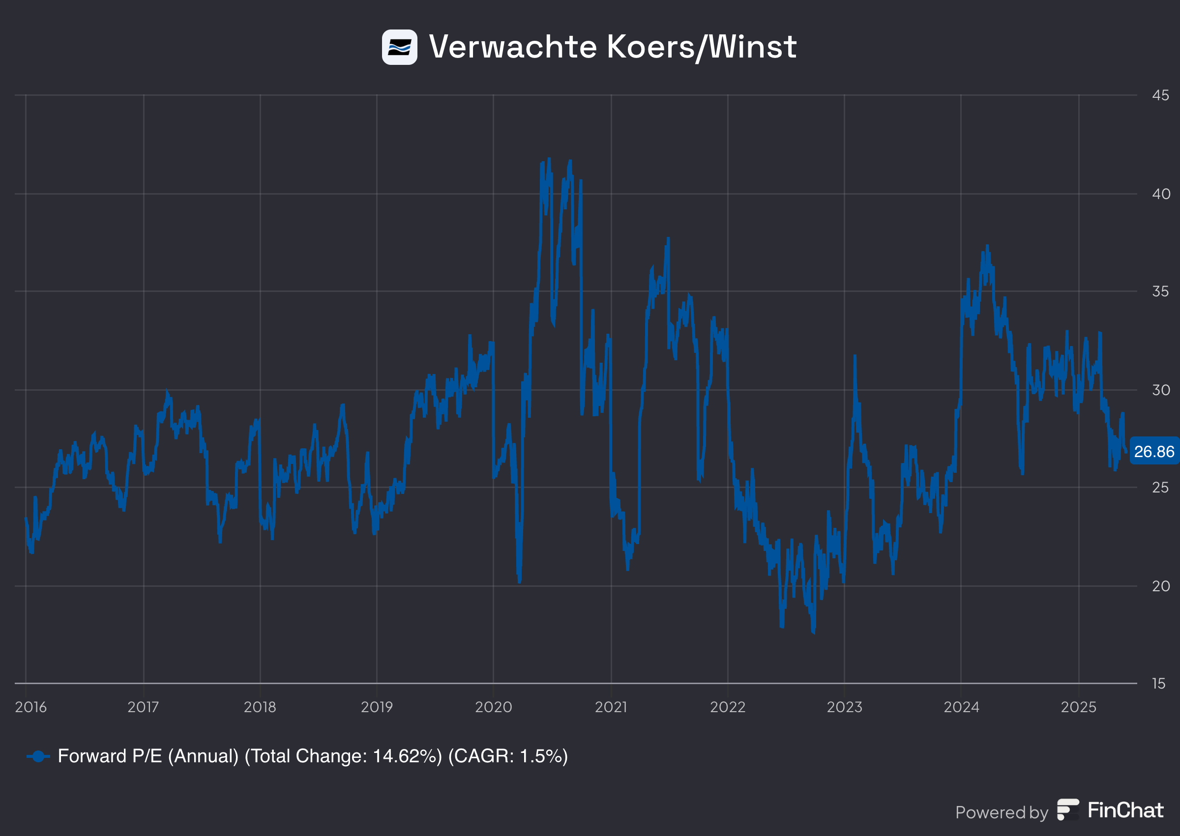 Zo ziet de evolutie van de Verwachte Koers/Winstverhouding eruit: