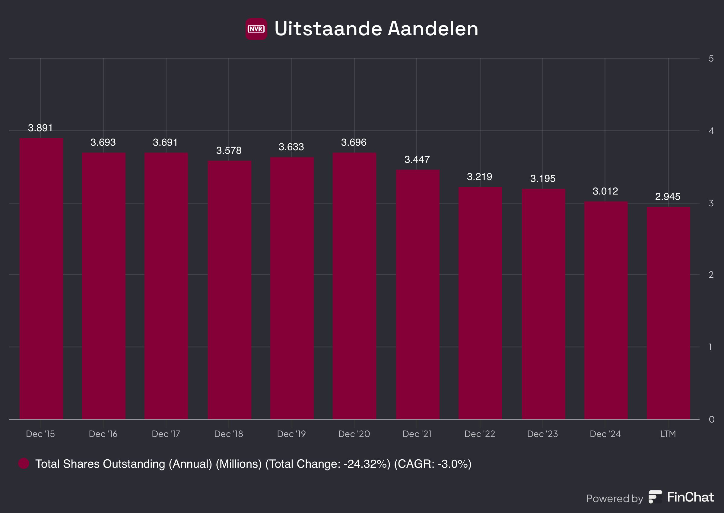 De laatste tien jaar heeft NVR 24,3% van zijn uitstaande aandelen ingekocht.