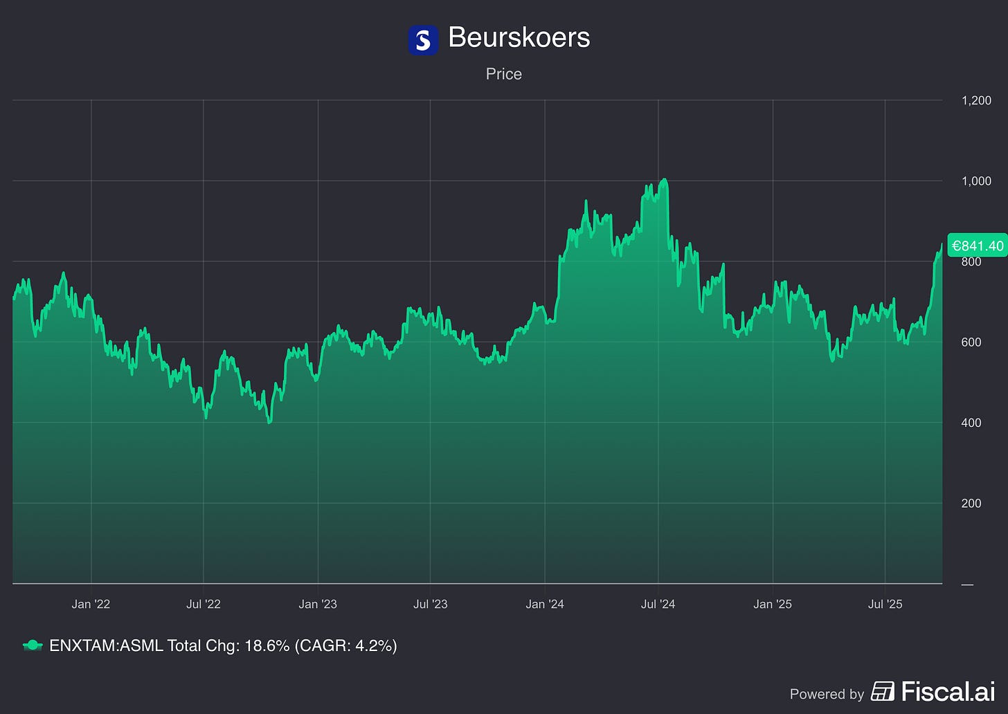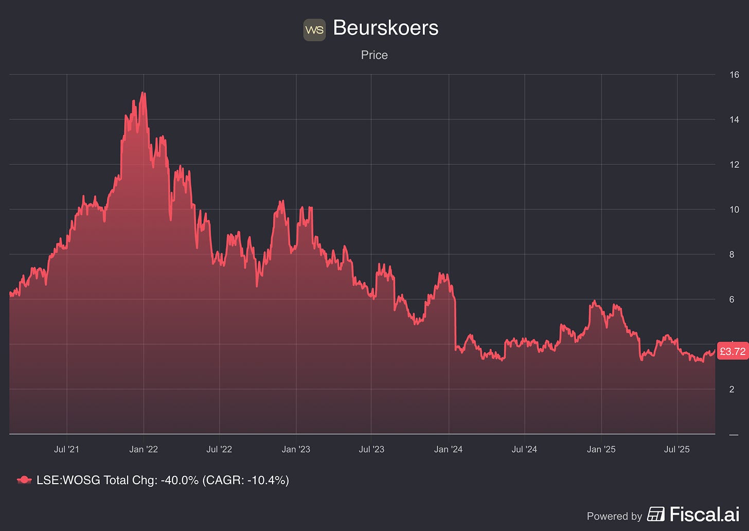 Een prachtig bedrijf, toch? We nemen de beurskoers er even bij. Sinds 2022 zijn ze meer dan 75% gedaald: